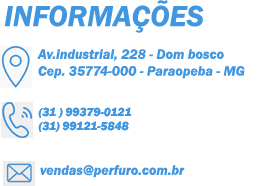 A Perfuro é uma empresa prestadora de serviços que atua na fabricação de artefatos para cortes, perfurações e sondagens , atendendo obras de todos os portes, sempre buscando o aperfeiçoamento profissional, alcançando assim a eficiência, economia e cumprimento de prazos.
